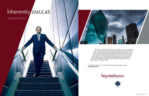 Haynes and Boone needed a new advertising and marketing campaign to promote their Dallas, Texas roots and their commitment and support of Texas and its people and businesses communities. With Dallas being considered one of the nation's top business markets, Haynes and Boone recognized large northeastern and mid-west law firms began opening offices in Dallas with aspirations to prospect and compete for the many business opportunities.